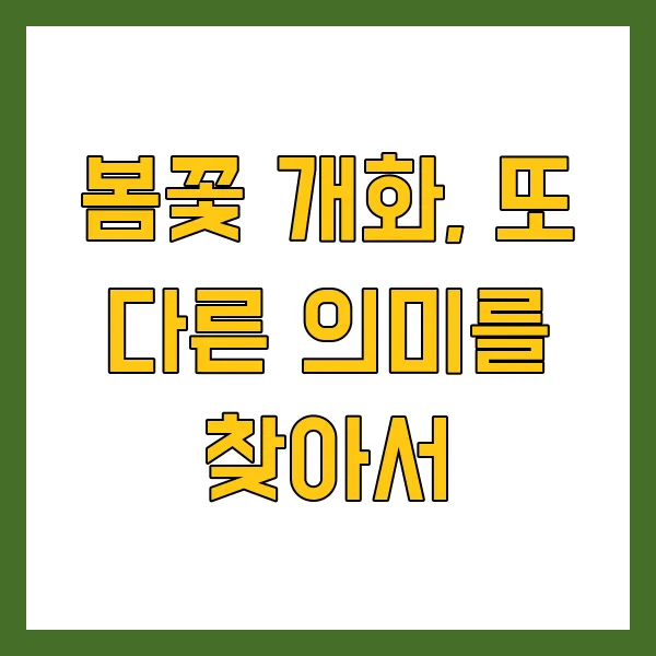 봄꽃 개화는 단순한 자연 현상을 넘어, 우리에게 다양한 의미를 전달합니다. 새로운 시작과 희망을 상징하는 봄꽃은, 긴 겨울을 견뎌낸 생명력과 자연의 경이로움을 보여줍니다. 또한, 봄꽃은 우리에게 휴식과 치유의 시간을 선물하기도 합니다. 바쁜 일상 속에서 잠시 벗어나 봄꽃의 아름다움을 감상하며 마음의 평화를 되찾아보는 것은 어떨까요? 가족, 친구, 연인과 함께 봄꽃 나들이를 떠나 소중한 추억을 만들어보세요. 2025년 봄, 봄꽃과 함께 행복한 시간을 보내시길 바랍니다!