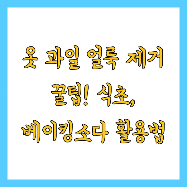 여름철 옷에 묻은 과일 얼룩, 정말 보기 싫죠?! 특히 흰옷이면 더 맴찢...ㅠㅠ하지만 이제 걱정 끝!과일 얼룩 제거의 끝판왕, 식초와 베이킹소다 활용법을 알려드립니다.천연 재료로 안전하고 효과적인 옷 관리 꿀팁, 지금 바로 확인하세요! 1. 옷 과일 얼룩, 이젠 걱정 마세요!과일 킬러인 저는 옷에 과일즙 묻히는 게 일상다반사였어요...ㅠㅠ하지만 이제 워시팡팡 덕분에 걱정 끝!과일 얼룩 제거에 탁월한 효과를 보이는 식초와 베이킹소다 활용법,옷감 손상 없이 얼룩만 쏙쏙 빼주는 마법 같은 비법을 공개합니다!1.1. 골든타임을 놓치지 마세요: 즉시 조치의 중요성과일 얼룩 제거의 핵심은 바로 스피드!마치 응급처치처럼 말이죠!얼룩이 생기자마자 바로 조치를 취해야 섬유 깊숙이 스며드는 것을 막을 수 있어요.시..